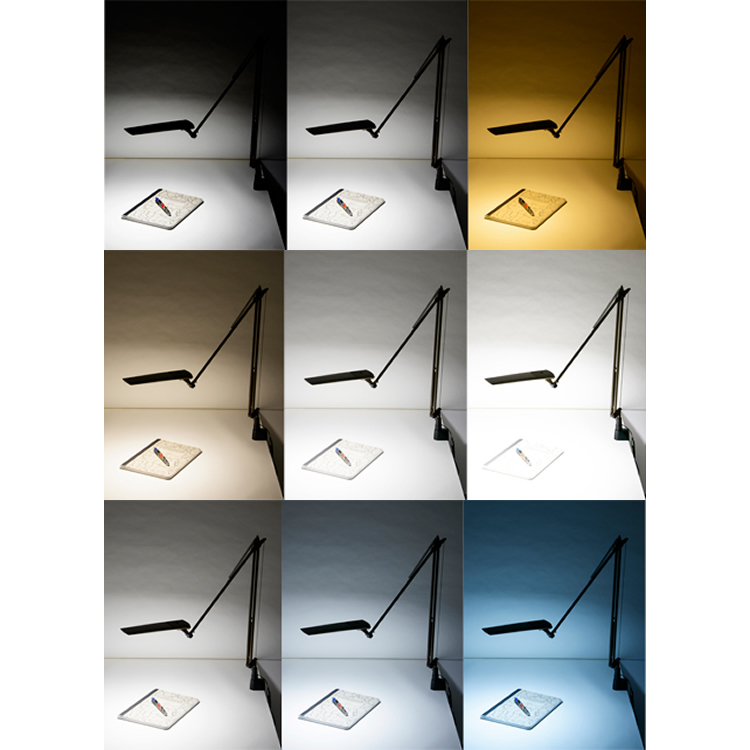 タッチレスON/OFFスイッチ / 5段階調光、5段階調色 / 天板上から取り付け可能クランプ |