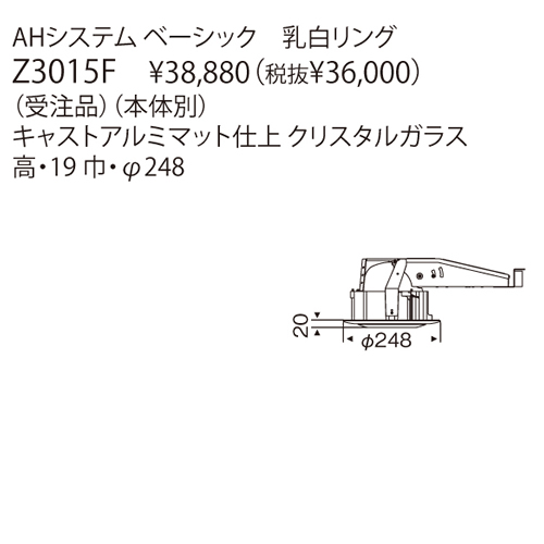 高・21 巾・φ248mmアルミキャストマット仕上 クリスタルガラスAHシステム ベーシック+乳白曲面リング(受注品)