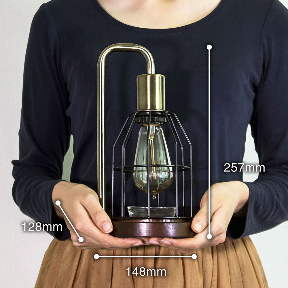 ワイヤーシェード:鉄、ベース:ラバーウッド、ソケットカバー:鉄、ガラスカップ:ガラス、エジソンバルブ:タングステンフィラメント・ガラス・ニッケル、香料ボトル:ガラス・PET |