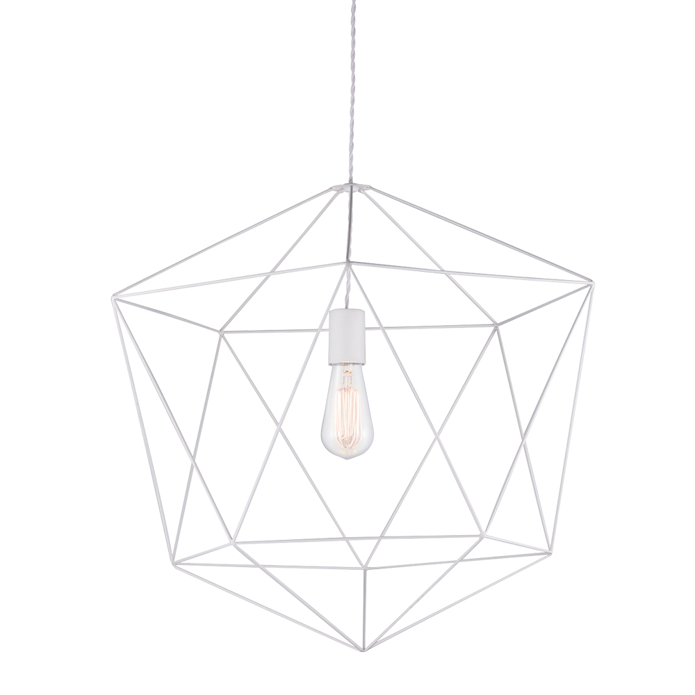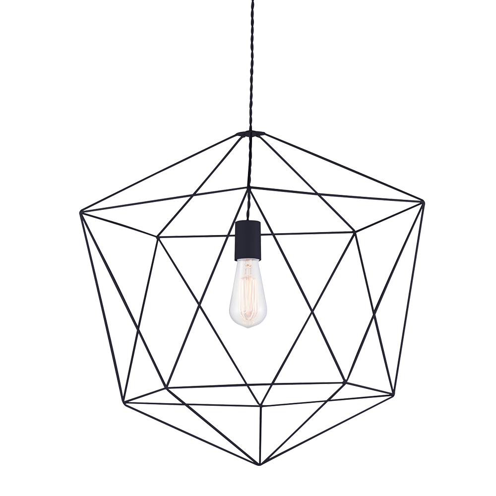 AMBIENTシリーズ。中に浮いたような電球を幾何学的なフレームが囲む、アーティスティックなペンダントライト。一見とても大きく感じますが、計算されつくしたフレームの幅や長さ、電球との余白が絶妙な空気感を生み軽やかな印象。解放感ある空間に仕上げます。 |