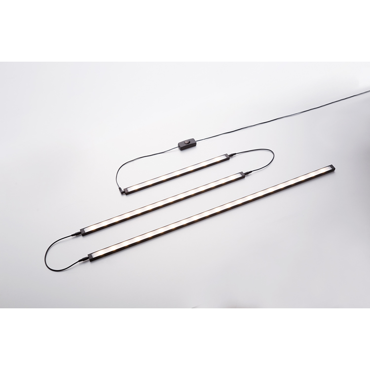LED BARシリーズ。スリムなボディからLEDチップが帯状にライトアップする、バータイプのライトです。マットな質感、可能な限りシンプルにデザインされたボディにあたたかみのある電球色のLEDチップを採用し、ワンランク上のバーライトに仕上がりました。マグネット式でメタルラック等には簡単に取り付けでき、ON/OFFは手元の中間スイッチで。単品使いはもちろん、付属のケーブルで複数のバーを連結する事もできます。(2m40cmまで)40.60.90cmのスペースにすっぽりと収まる3サイズ展開で、メタルラック、クローゼット、本棚、AVボードなど、様々な用途に合わせて手軽に間接照明をお谷お楽しみ頂けます。 |