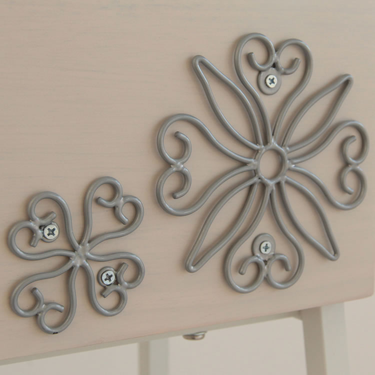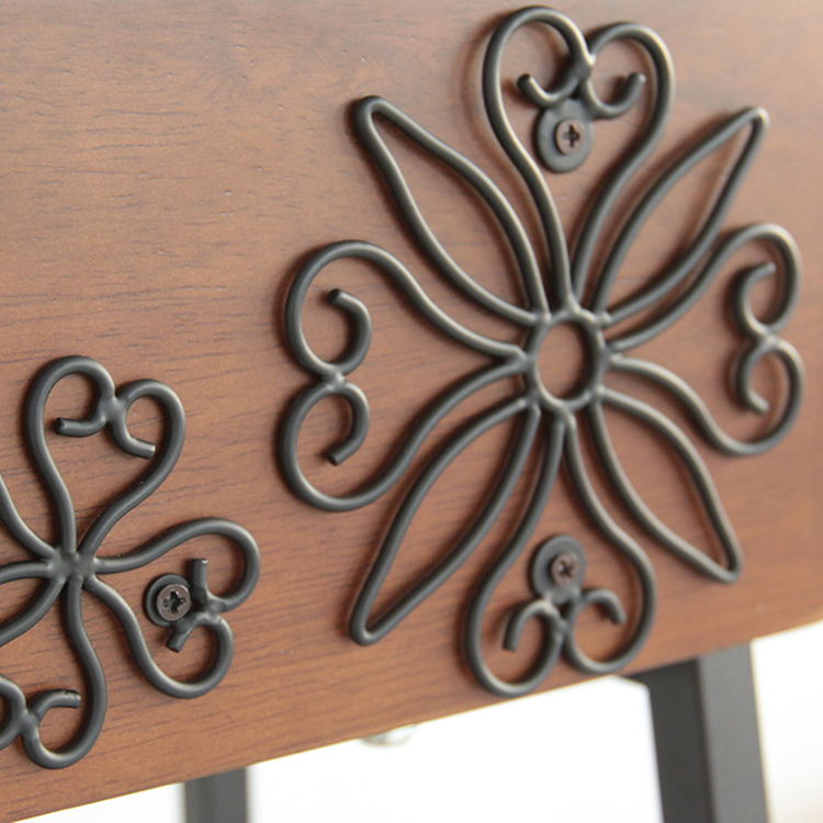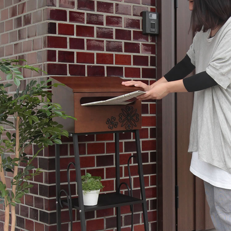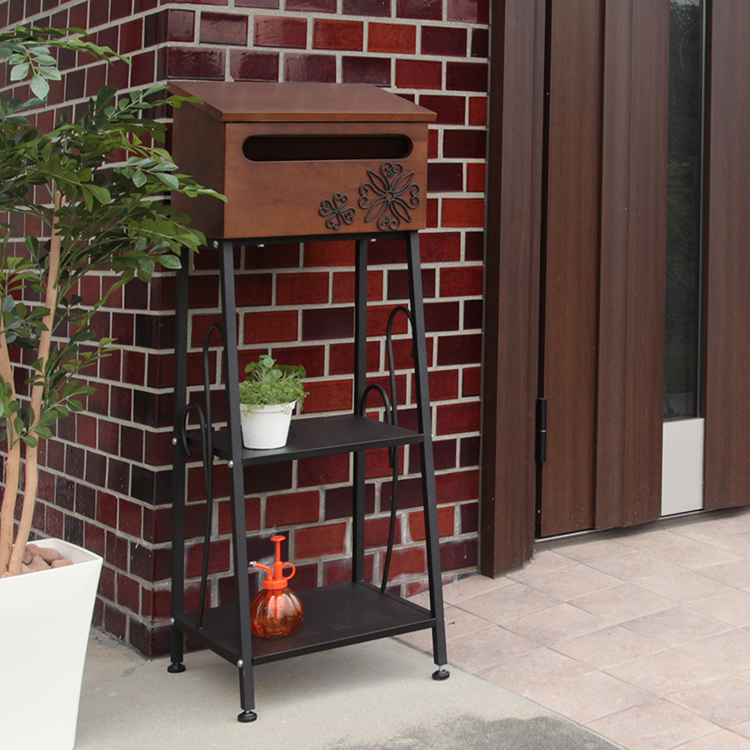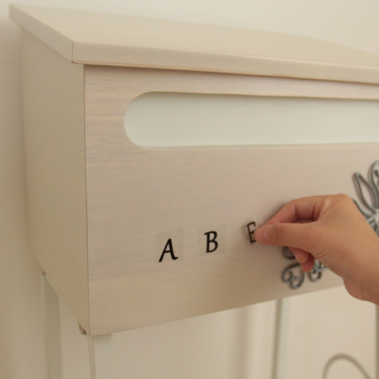 木材と金属の組み合わせが特徴的なポストです。ボックス部正面には立体的な花の模様がついており、エントランスを華やかに演出します。付属のアルファベットシールでポストの正面にお好きな文字を組み合わせて貼っていただく事も可能です。 |