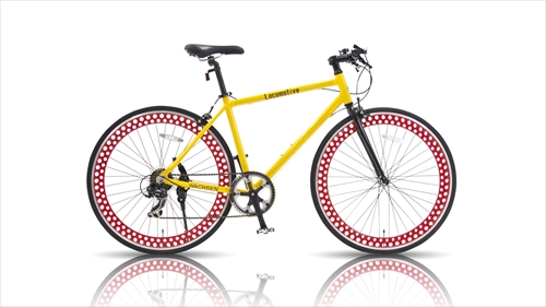 これまでのバイクに囚われない個性派モデル。ドット模様のように穴の開いたディープリムは走行時と停車時に違った顔を持つ。イエローのフレームにレッドのリムとブラック・シルバーのパーツがマッチし、個性を主張したカラーとデカールのデザインが魅力たっぷりです。伸縮式スタンド、シマノ7段変速を装備した普段使いにも便利なクロスバイクです。 |