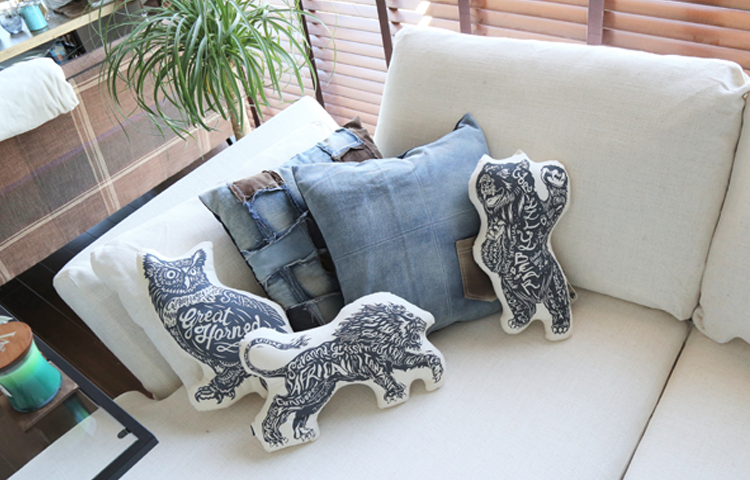 よりリアルで表情豊かな動物や恐竜をグラフィック処理し、アントワープのスタジオでひとつひとつハンドメイドでプリント。お部屋やベッドまわりのアクセントにGood! また気軽なギフトとして、キッズだけじゃなく大人にも◎
