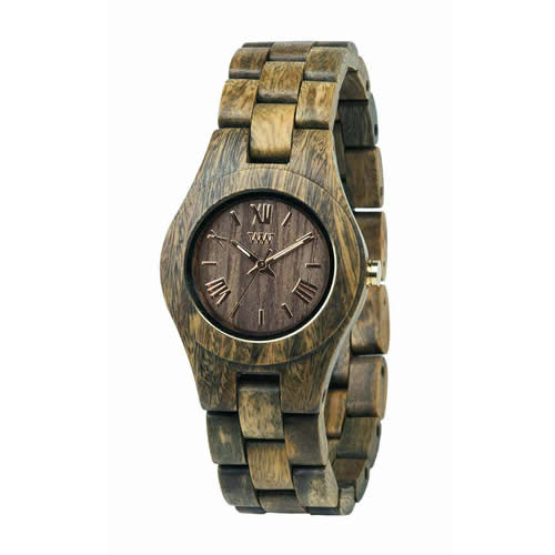 - フローリング材のスクラップで不要となった資材を有効活用している環境にやさしい腕時計。