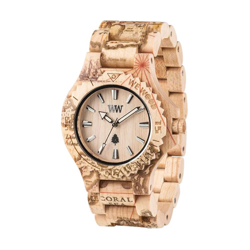 - 「限りある資材をより有効活用するために」というコンセプトを元に、イタリアの靴メーカーと2人の事業家とのコラボから生まれたWEWOODブランドの腕時計。