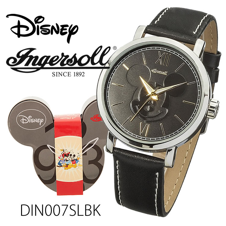 ミッキーマウスウォッチ DIN007SLBK Ingersoll Disney Classic Time Collection 時計 プレゼント ギフト 贈り物 腕時計 おしゃれ ウォッチ ブラック シルバー