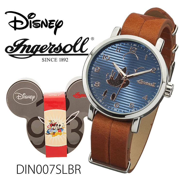 ミッキーマウスウォッチ DIN007SLBR Ingersoll Disney Classic Time Collection 時計 プレゼント ギフト 贈り物 腕時計 おしゃれ ウォッチ ブルー ブラウン