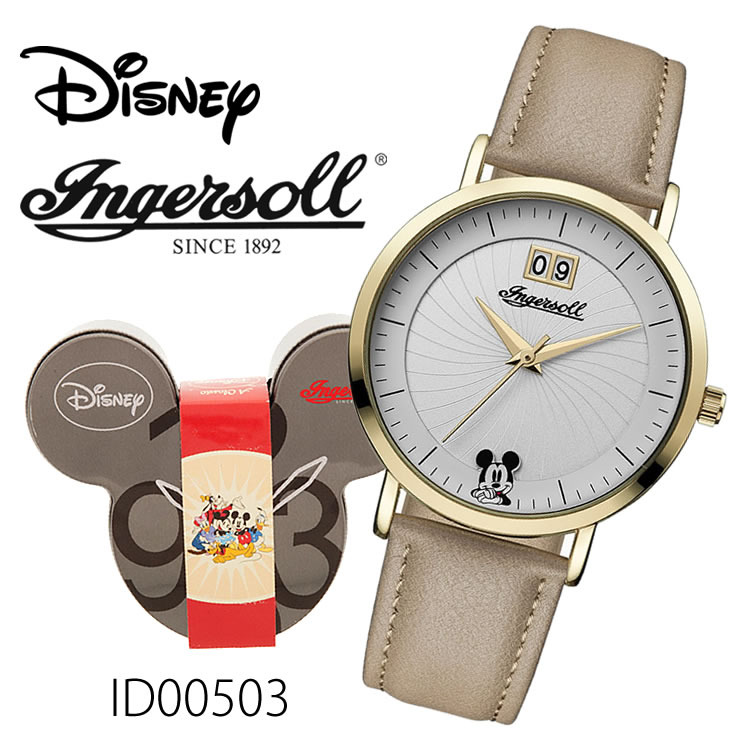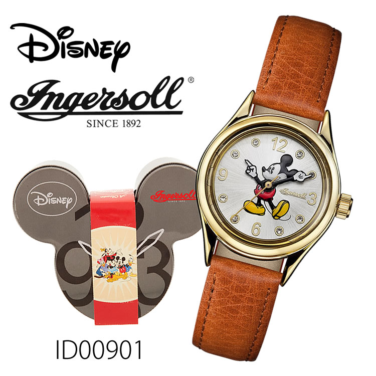 ミッキーマウスウォッチ ID00901 Ingersoll Disney Classic 2016 Collection 時計 プレゼント ギフト 贈り物 腕時計 おしゃれ ウォッチ ゴールド ホワイト ブラウン