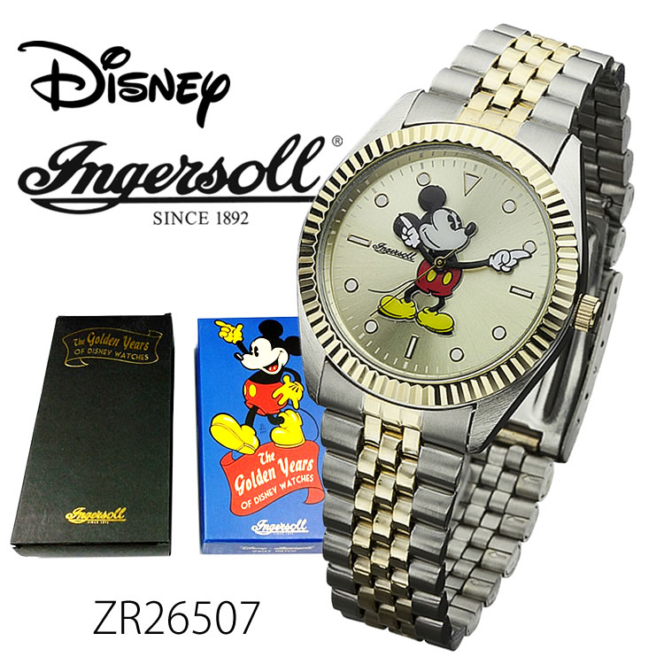 ミッキーマウスウォッチ ZR26507 Ingersoll Disney Golden Year's Collection 時計 プレゼント ギフト 贈り物 腕時計 おしゃれ ウォッチ シンプル ゴージャス ゴールド シルバー ゴールド