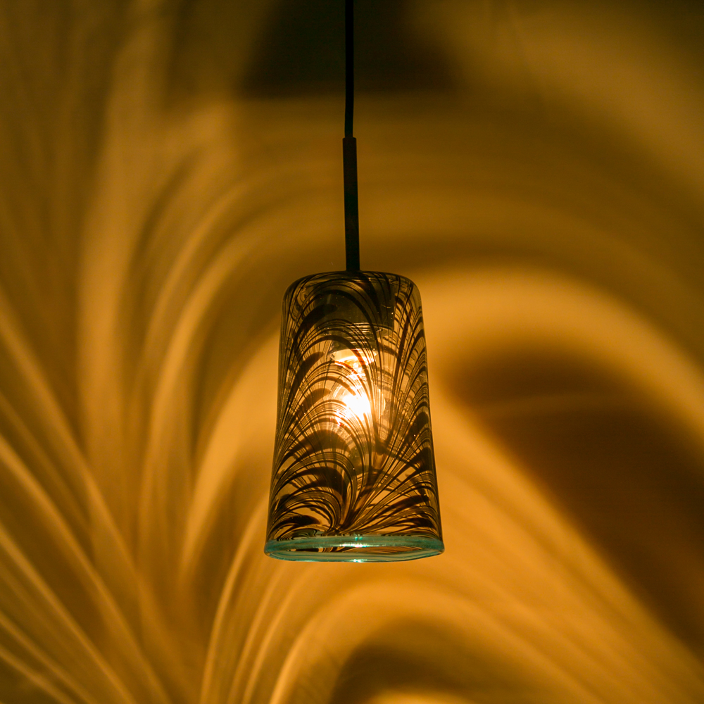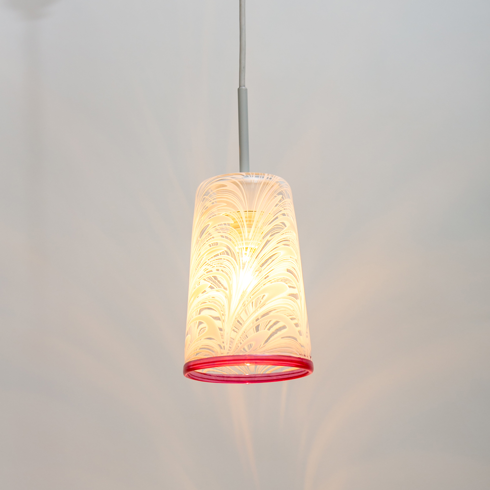 「あ・うん」の呼吸で作り上げられた作品は手作りのガラスでしか出せない透明感に色が混ざり重なり合い、この世に二つとない模様を浮かび上がらせています。