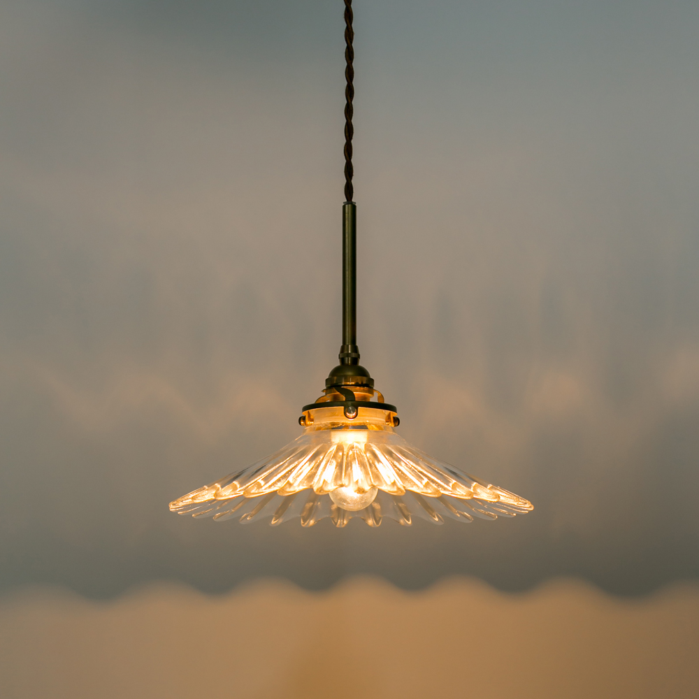 7.和風灯具(2,4とセット) 既成品のソケットに真鍮のガラスホルダーを自社で開発し、より大正レトロに近い形状を再現。 E26 LEDランプに変更可能です。お取り替えの際は家電量販店などでお買い求めください。(定格 使用電圧 100V LDA7 1灯)