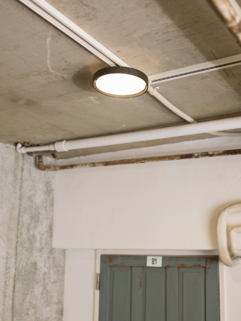 美しいシルエットに重厚感のあるフレーム、真鍮使いがクラシカルなスポットライト。