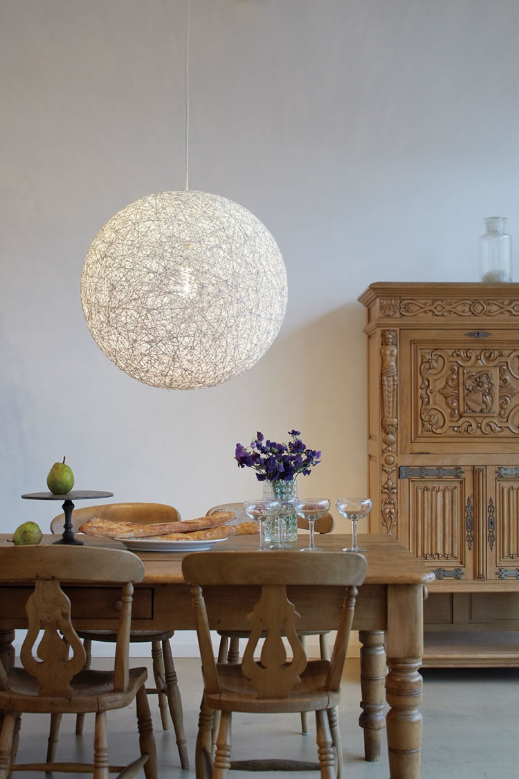 麻紐を樹脂でコーティングし月のように丸いシェイプに仕上げ、落ち着いた存在感と温かみを演出したMalleeシリーズ。